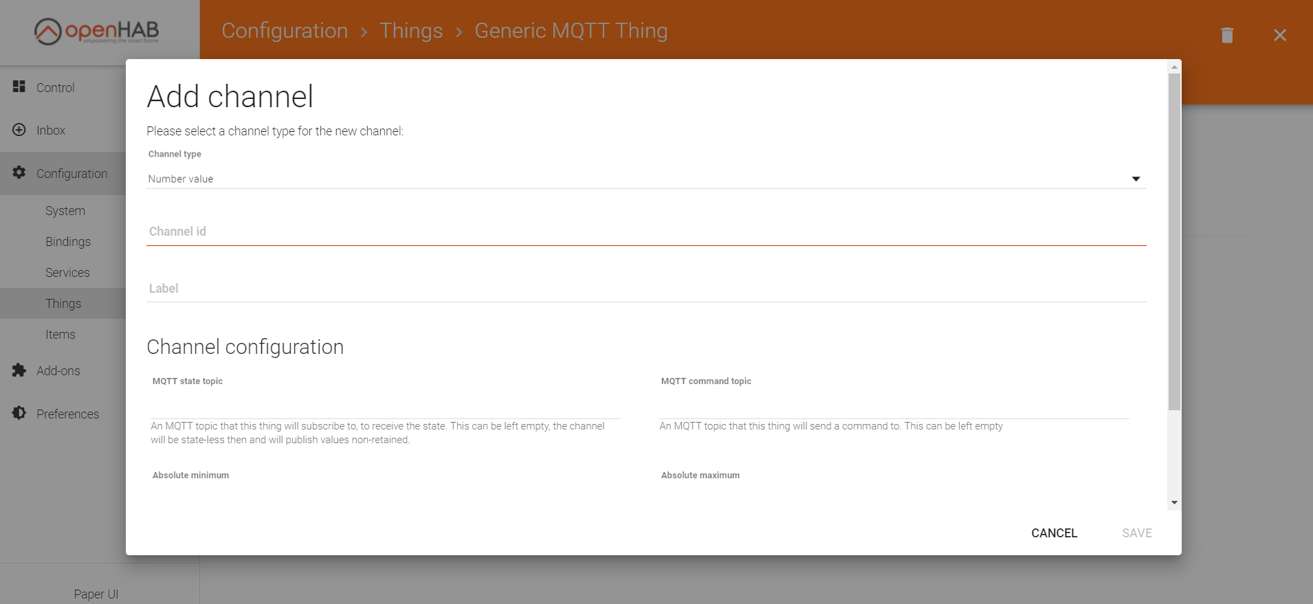 I think that I have something wrong in my mqtt settings. I have installed Mosquitto through openhabian-config and installed mqtt bindings in PaperUI.