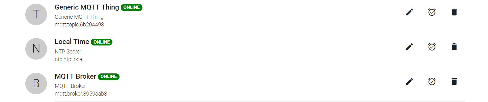 You need to have a broker-thing (which represents the connection from openHAB to your MQTT broker) AND you need the mqtt things (which represent your devices using the MQTT protokoll).