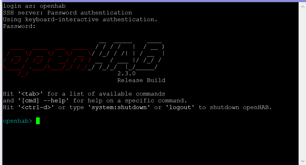 Hi. I am able to connect using putty and ssh port 22 to my Rpi running OpenHabian 3.3.0, but I don’t know which user and password should be used. I’ve tried the ‘admin’ user I have created in OH, and also that openhab/habopen, but neither of them works. Thanks!