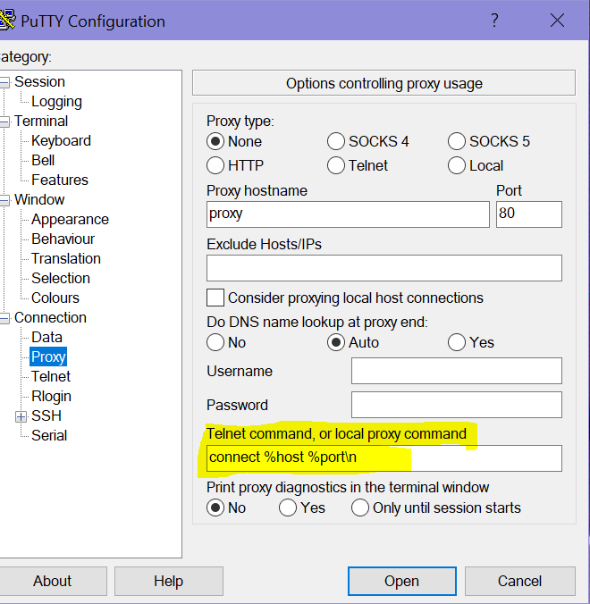 Have you tried to access the terminal without proxy, just a normal session? Here’s an example where you enter your IP or host name (of openhab server) with port 22 and select SSH.
