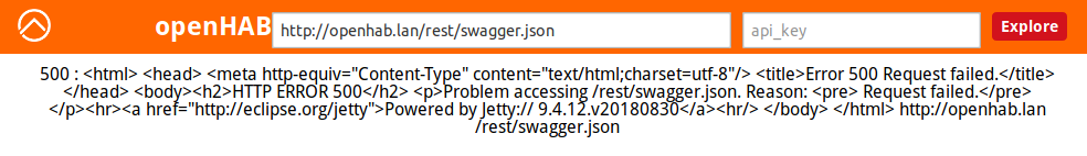 2019-04-30 20:31:35.205 [WARN ] [org.eclipse.jetty.server.HttpChannel] - /rest/swagger.json
