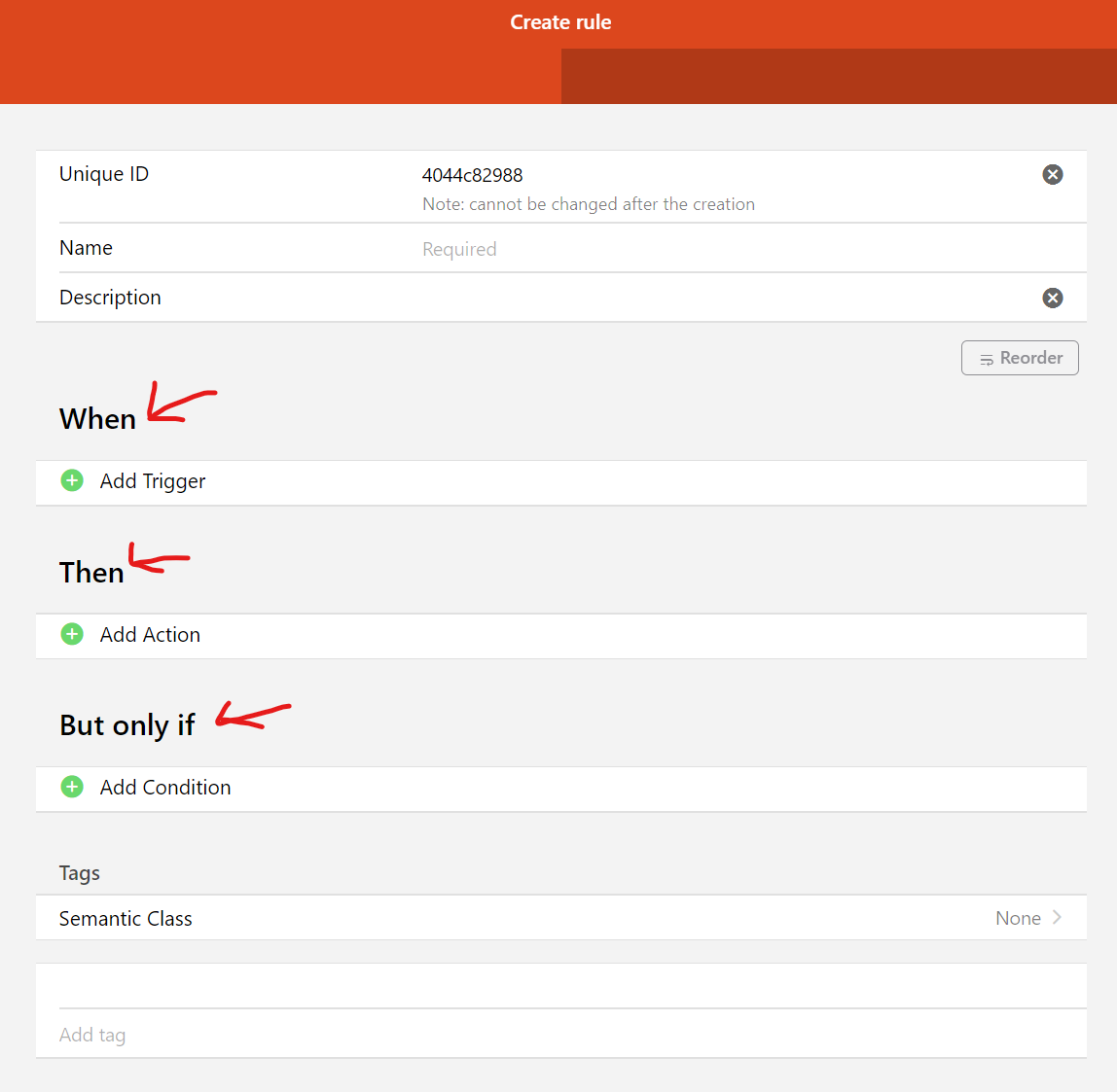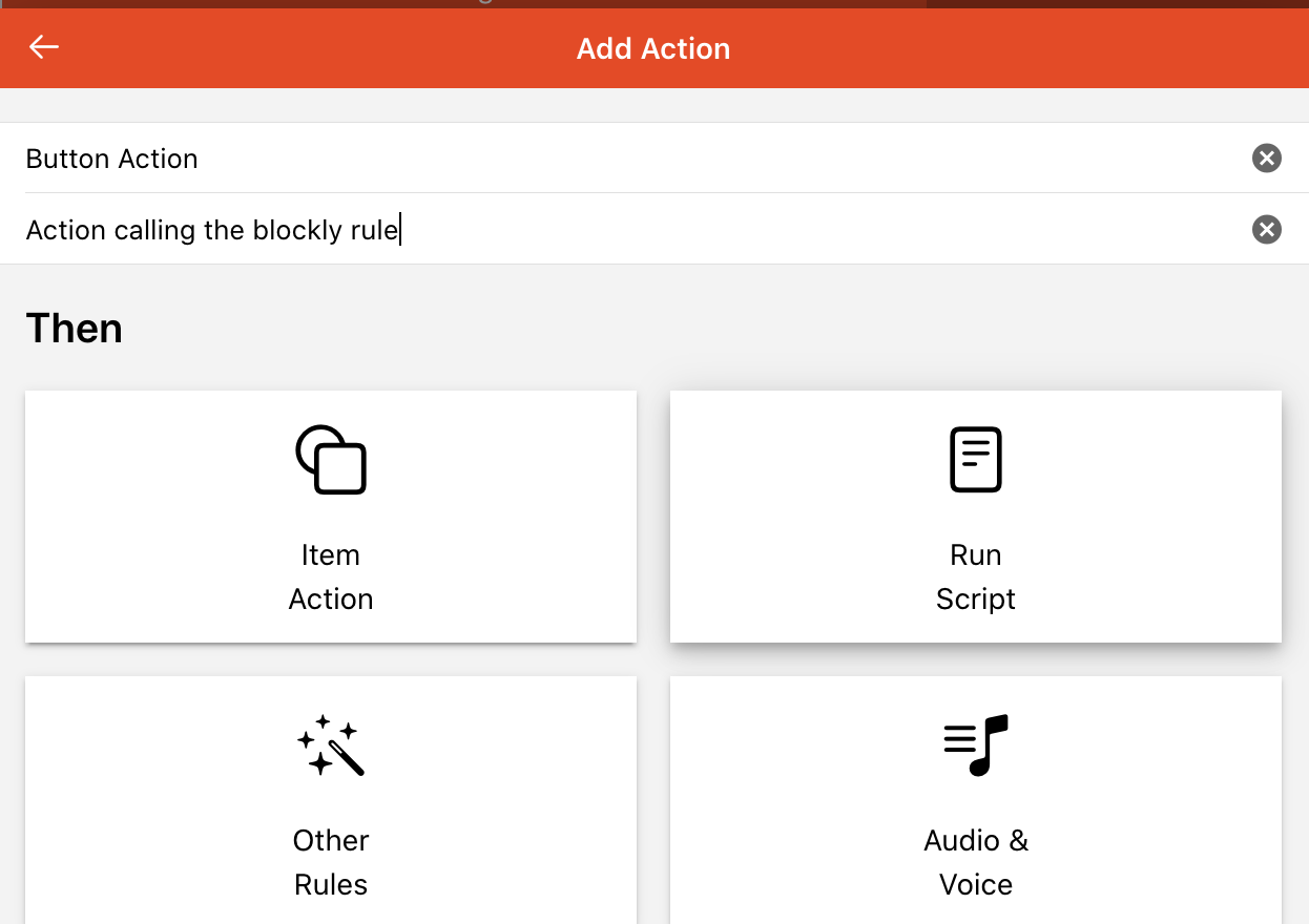 Then: what to do when the rule is triggered. This is where your Blockly code would go