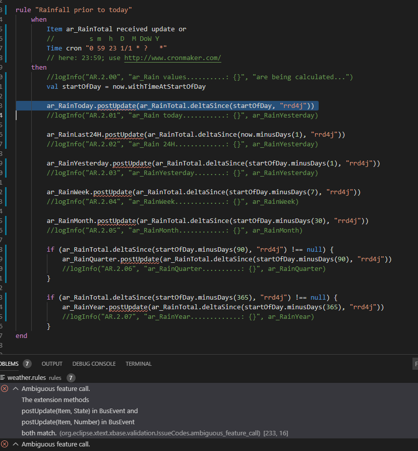 VSCode is telling you that it doesn’t know with one to use as it can’t decide what type is ar_RainTotal.deltaSince(startOfDay, "rrd4j")