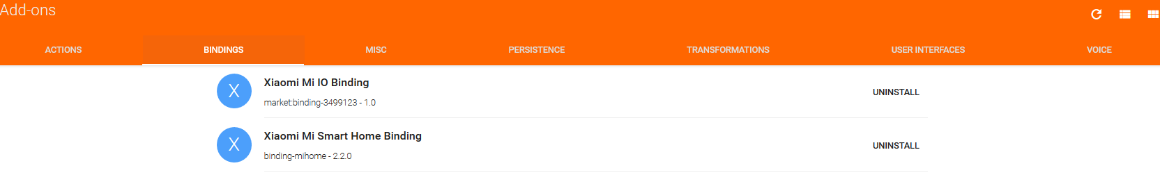 I’have installed iot market but in binding tab I ca only find “Xiaomi Mi IO Binding” and “Xiaomi Mi Smart Home Binding”