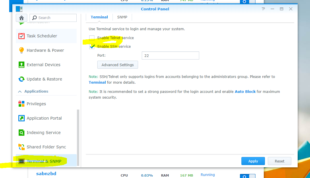 on my Raspberry (= openhab2 productive system) I go in via Putty … but here on the Synology I can’t find the right port … if it is one of these … it wouldn’t work: