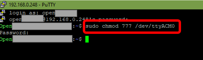 chmod 777 /dev/ttyACM0 helps for me; but doing that after each restart is not a solution.