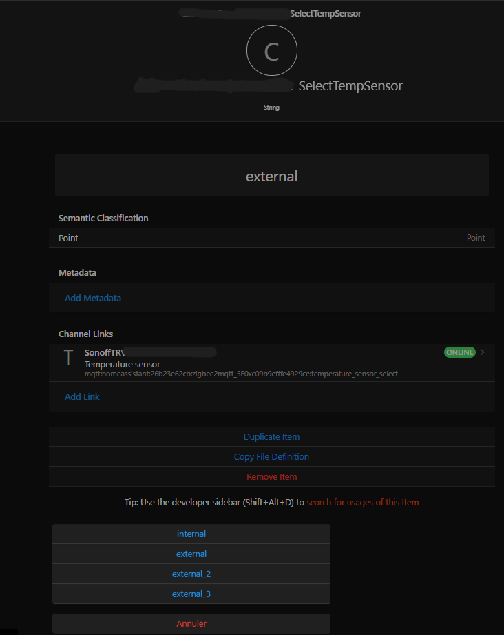 Bindings can also provide state/command description metadata to Items linked to a channel, those aren’t real „metadata“ though, so they aren’t displayed.
