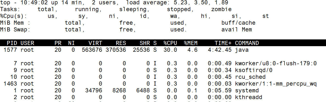 If I start openhab in the console (sudo openhab-cli start) I don’t see openhab in “top” (just java):