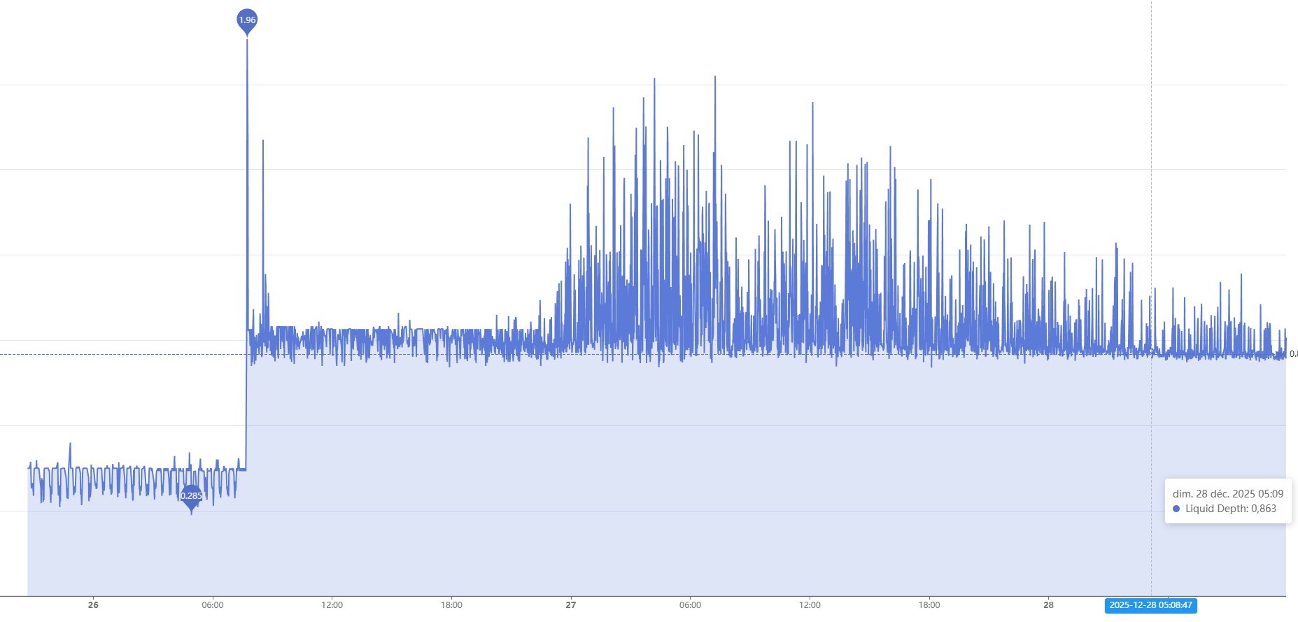 The jump on 26 around 8:00 is because we add 500 L to the tank.