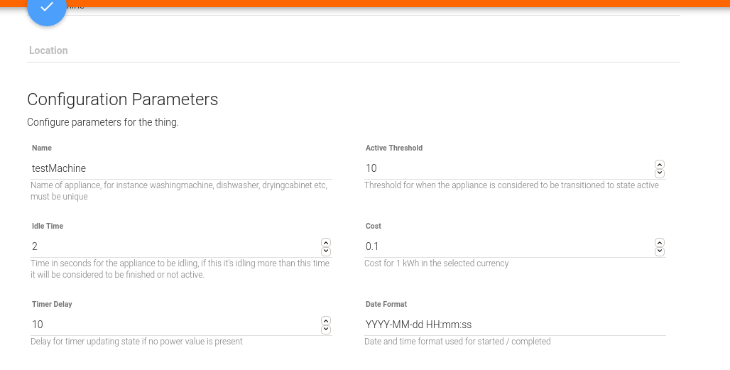 | Active Threshold | Threshold for when the appliance is to be transitioned to state active | Required | 100 |