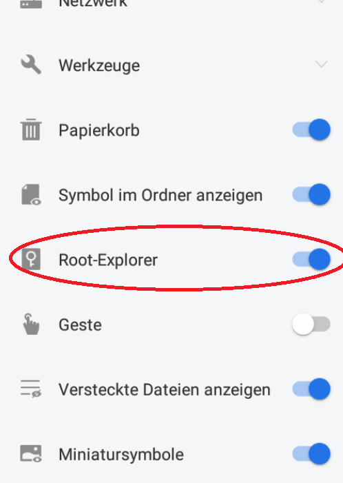 Set ES File Explorer to “Root Mode” (Scroll down left to find “Root Explorer”)