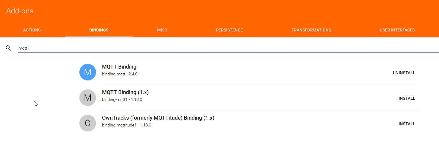 Next, go to Paper UI (Addons → Bindings). Uninstall the legacy 1.x Binding and install the new binding.