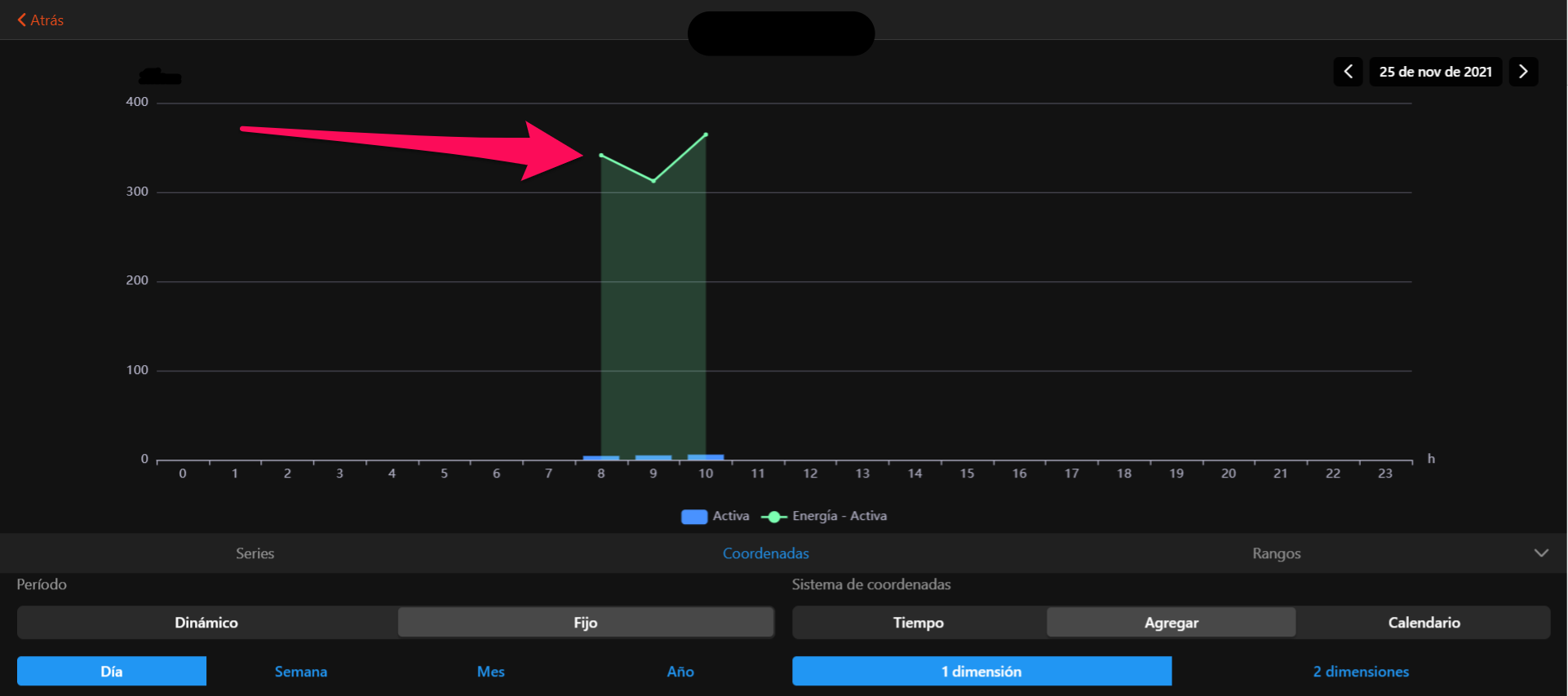 However, if I go to Coodernadas → Fixed (day) → Add (1 dimension) if I see the value, but not as I want.