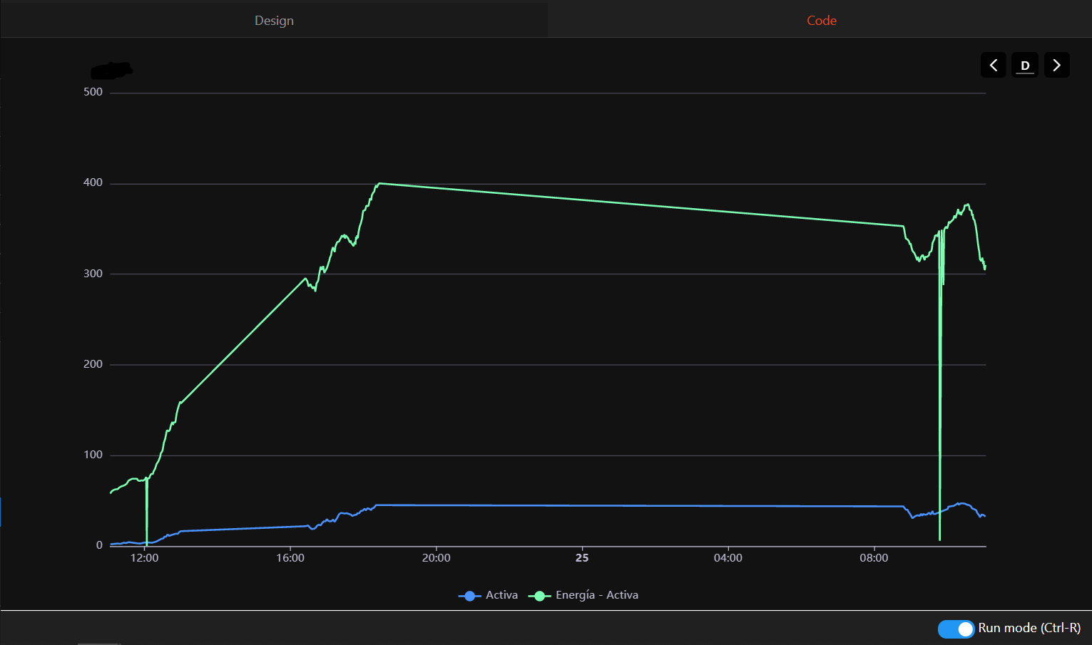 Also, if I go to the code part and I replicate the code of the Item that if I see how I want it but I change the item in question, it does appear as I want. This does not help me since a normal user cannot go to the code part and modify it each time … and it also does not help me to generate a graph and make it the one that opens since different values may be required and crossed.