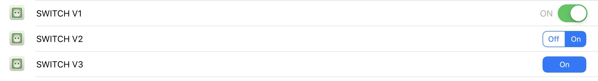 This is a Switch widget in a UI. It need not be associated with a Switch type Item, and is commonly used with Number or String types. When mappings are used, it may take into account one or ten different recognizable states.