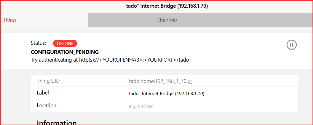 at org.openhab.binding.tado.internal.servlet.TadoAuthenticationServlet.serveStatusPage(TadoAuthenticationServlet.java:109) ~[?:?]