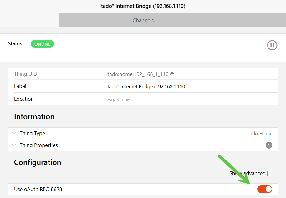 Error was "Status: Exception while starting httpClient, tokenUrl: oauth-rfc8628" when visiting http://10.0.0.1:8080/tado