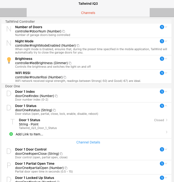 Is this the only Openhab server your running the Tailwind Thing on, for this specific door controller?