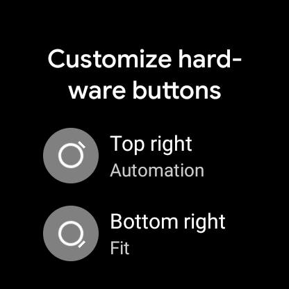 Many of the more recent Android Wear watches come with three buttons. Two of those three buttons can often be customized to open the app of your choice. Open settings on the watch and scroll down to “Personalization” and then to “Customize hardware buttons”. Choose which button you want to launch your AutoWear screen and choose the “Automation” app from the list.