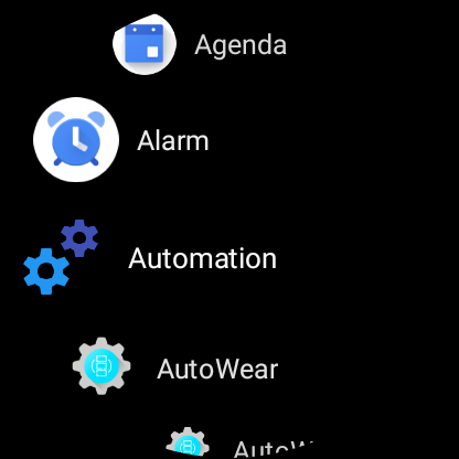 On your watch open AutoWear Settings. Scroll down to “Launcher Apps” and open it. You will see a list of a bunch of random seeming workds. These are the names that will be used as the application name. I chose “Automation” from the list and toggled it on.