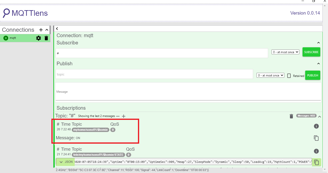 I made some changes as per your suggestion and I’m now getting some reaction from Tasmota on the console!! It is saying " {“Command”:“Unknown”} " but at least it is receiving a message!