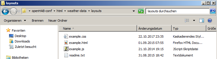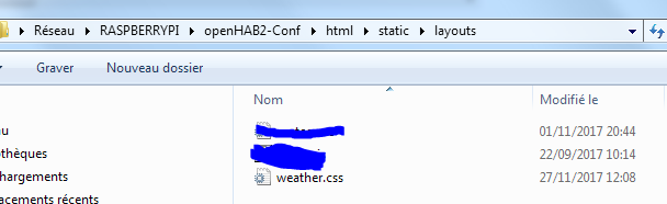 As it was written, OH was attented to find the weather.css file in the http:// 192…:8080/static/static/layouts folder.