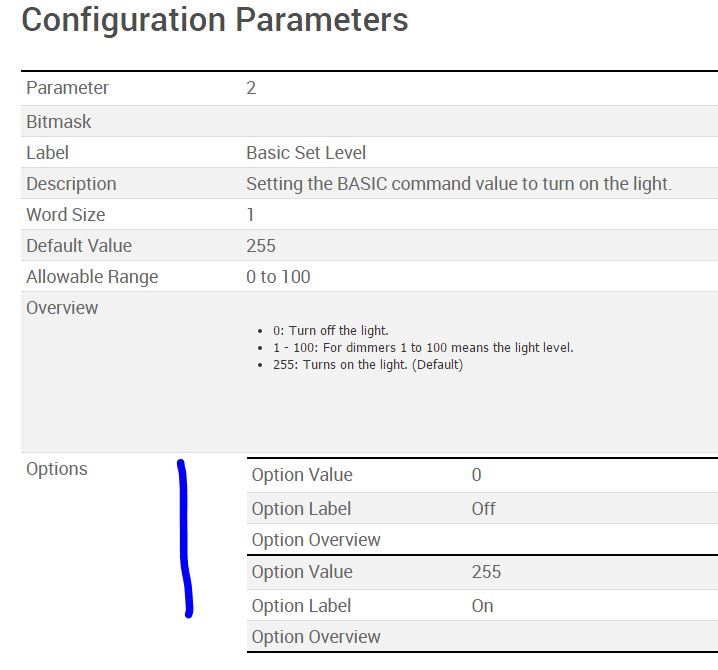 I understood that, but my question is what is wrong with this. If I look at your example above, we have option 0=Off, and it says exactly this in the Overview - same for 255=On. I’m not sure what is wrong with the definitions?