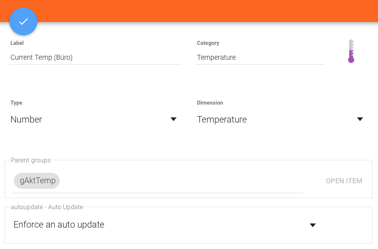 In the Events.log I get an entry for the (temperature) change. But in the Paper UI there is never a value. If I create a second item with a different name, everything works as usual. The connection is made via “Parent groups”, directly in the “Paper UI”. I have restored the system via a backup. Could this be the reason? I would not like to change my name convention.