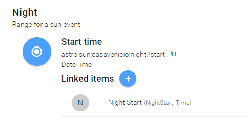 DateTime EveningNightStart_Time "EveningNightStart [%1$tH:%1$tM]" { channel="astro:sun:local:eveningNight#start" }