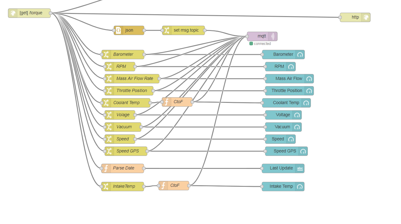 The HTTP in node splits out the data and the HTTP out node gives the “OK!” the torque app is looking for.