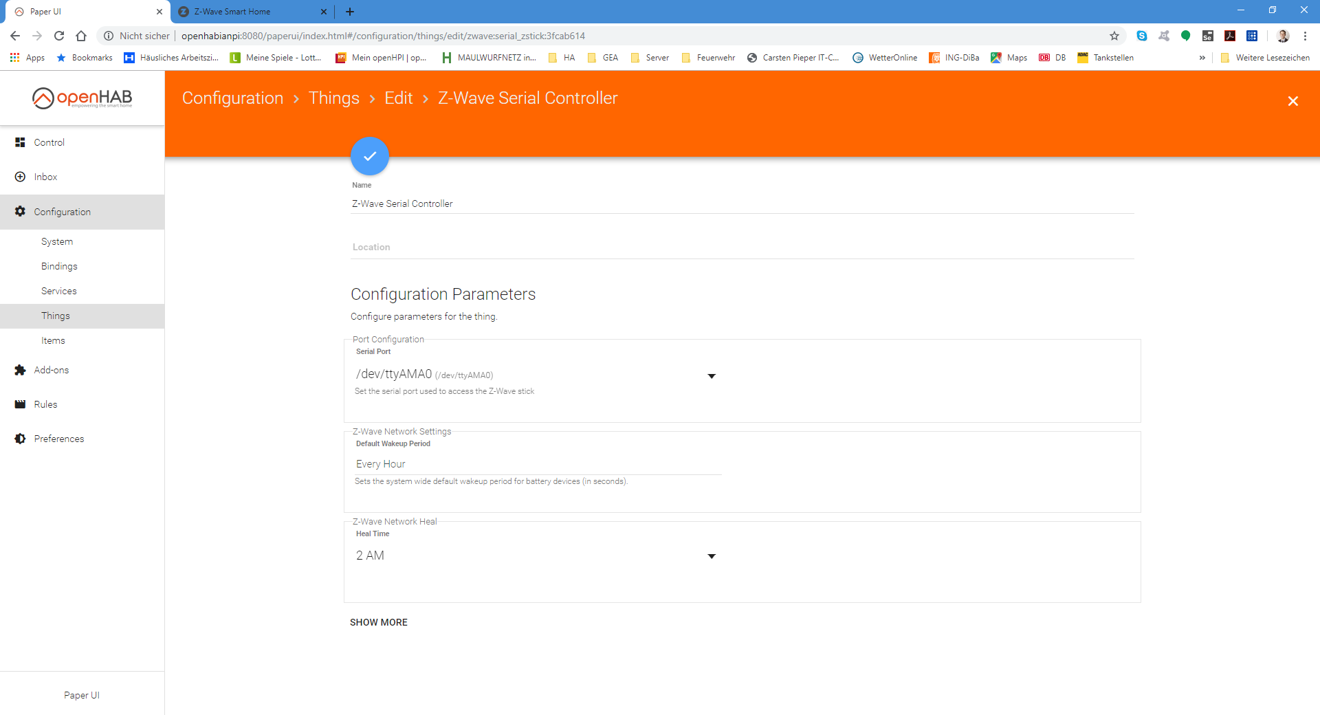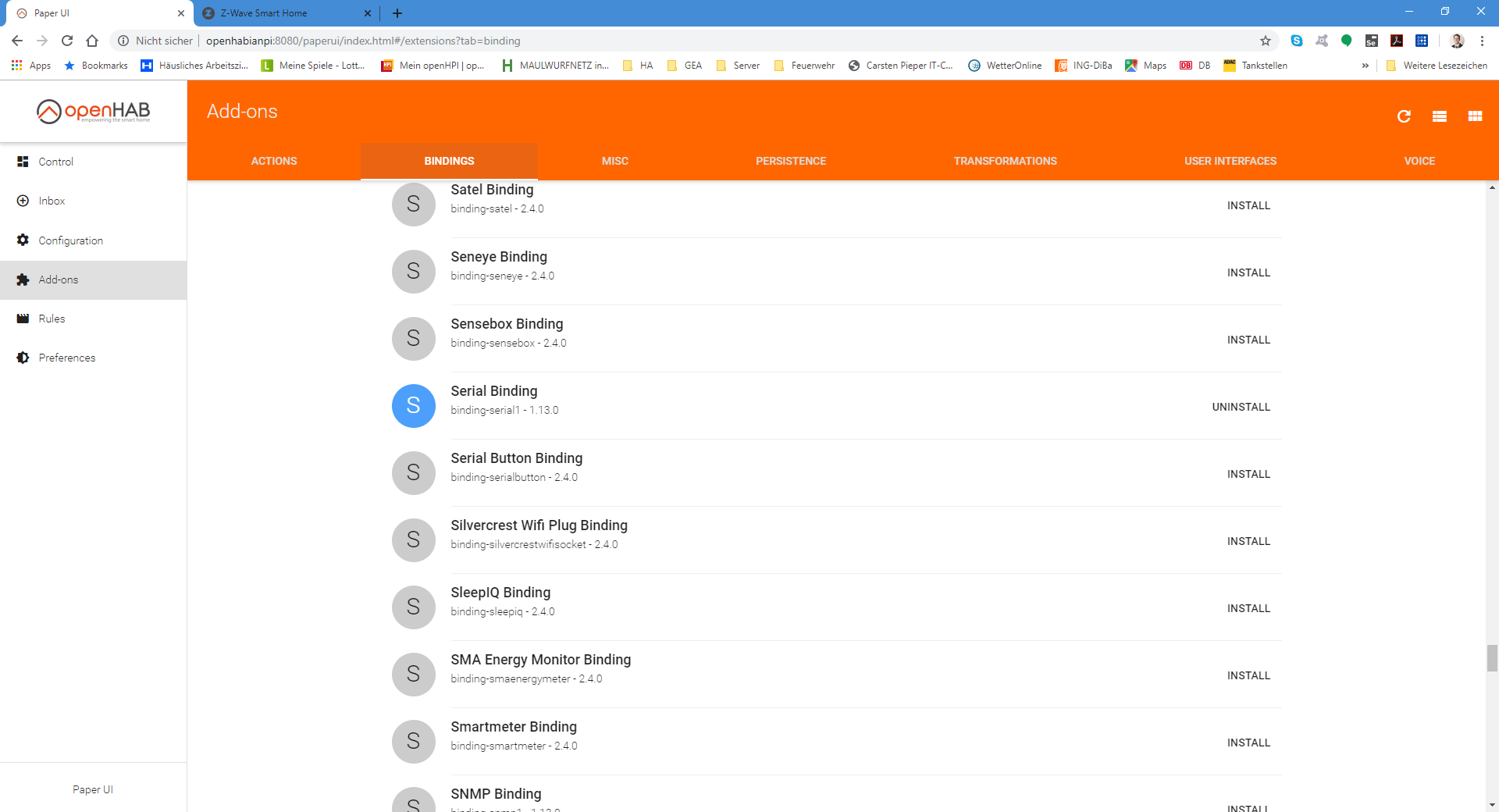 What to do next? Following the Z-Wave-binding-doc, I first have to add a serial adapter. Where do I have to do that and why is that not explained in the doc? What I got managed to do with some trial and error was the following thing: