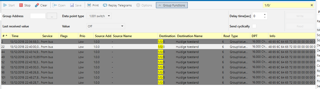 when i look to the knx bus i only see the groups adress of the manual send on the bus