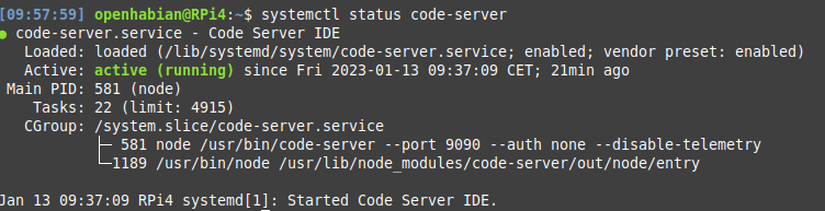 [09:03:03] root@RPi4:~# sudo systemctl status code-server