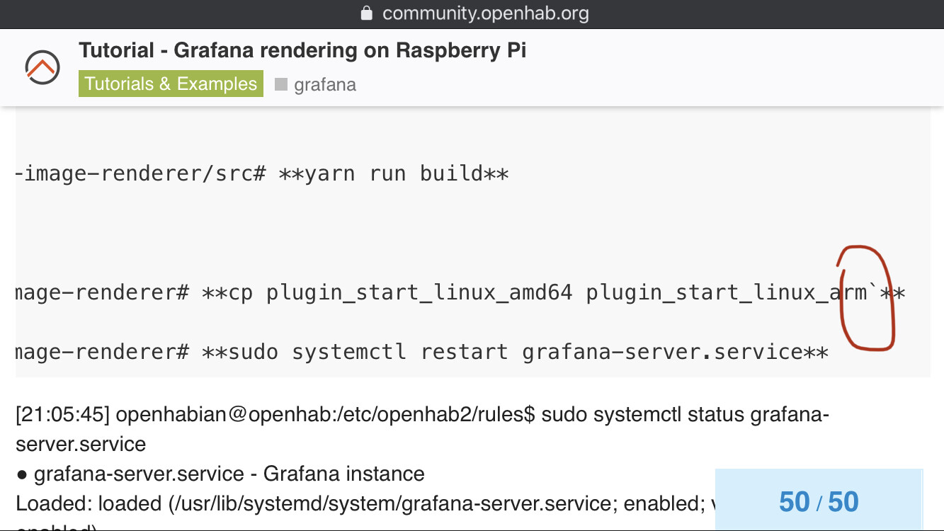 I got Grafana rendering working on RPi 4 (4Gb) running openhabian using a mix of the steps above and some more. Rendering takes approximately 5 seconds, so the webview solution is faster. But here we go: