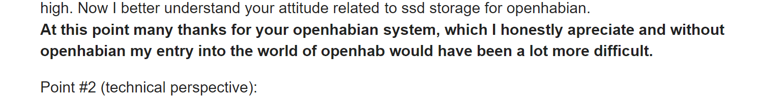 Now given I spent a lot of time explaining to you in person why we do not support SSDs in openHABian and that we want to prevent right that from happening, I’m really deeply and personally disappointed having to read you are now coming up with exactly this.