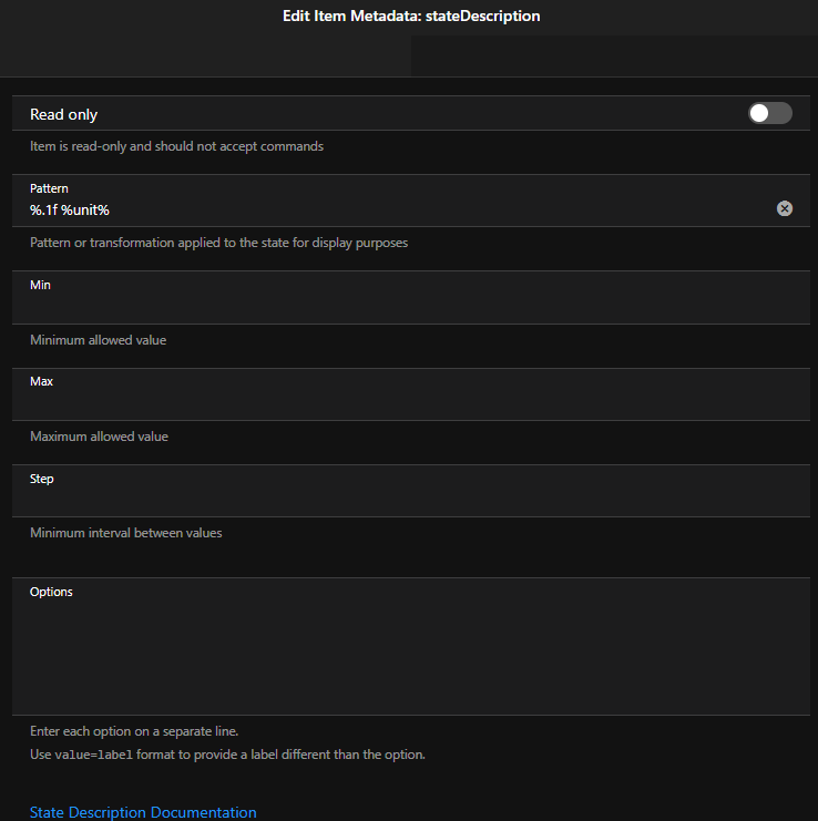 - displayState is after the state description pattern %.1f %unit%. This can be used in layout pages. It is not recorded in the persistence.