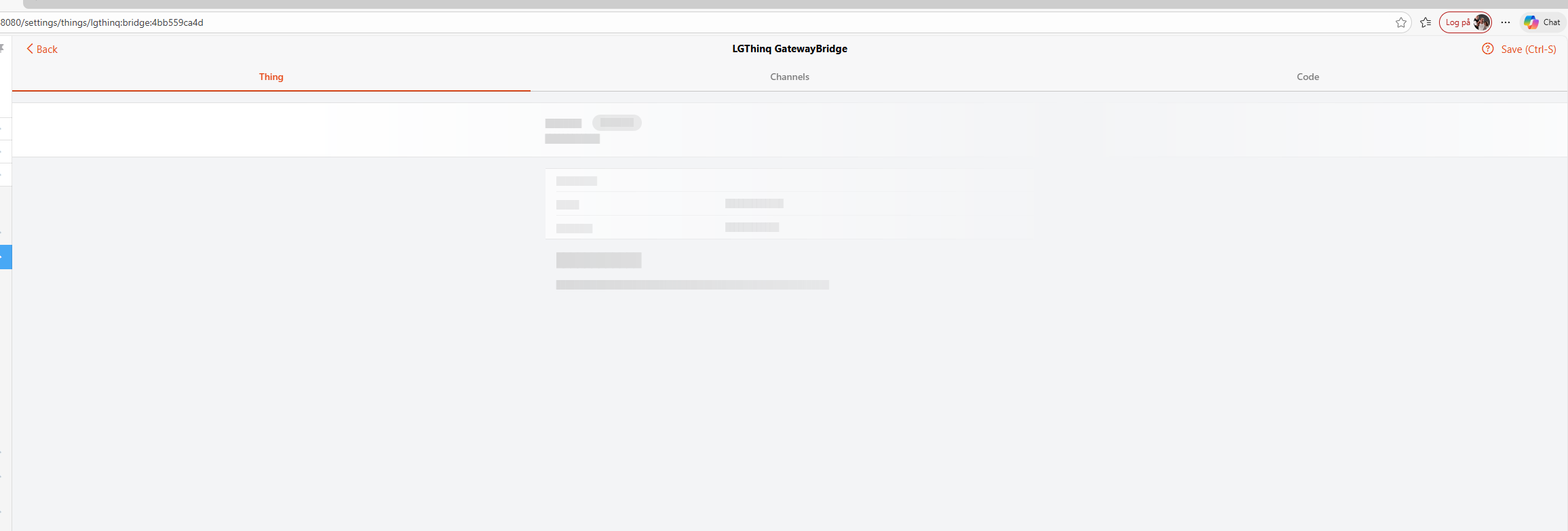 This is how it shows when I try entering a Thing in MainUI. And it just seems like its reloading all the time never showing the Thing and its settings.