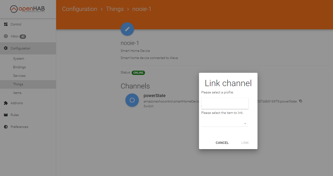 I am unable to link a channel “powerState” from an Alexa enabled plug switch. The issue is I cannot select a profile in the Paper UI per the screenshot below. If anybody has any suggestions it would be welcomed.