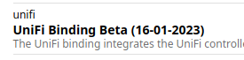 To make sure, I’ve installed “UniFi binding (beta)” under Settings → Bindings → Community Marketplace.