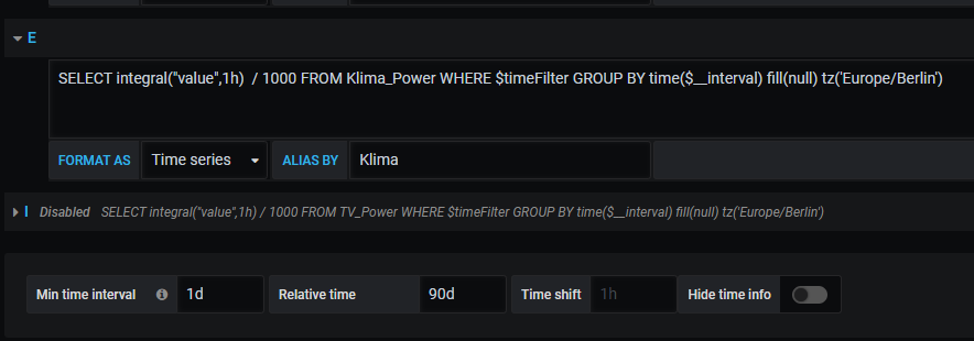 Also it would be cool, if one could enable “auto-tagging” based on the current timestamp. Means: putting a tag for the current month, year and maybe week number. Since otherwise it’s almost impossible to perform grouping with influxdb in Grafana. E.g. to graph the power consumption sum on a week, month or year basis.