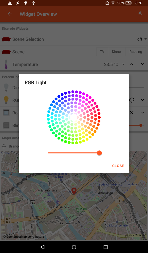 While I understand the concept of HSV and thus the meaning of the two sliders in the current picker, it doesn’t feel intuitive. If I want to change from blue to warm white, I have to select yellow/orange and change the upper slider. And why is the lower slider 100% - 0% brightness and not the other way round.