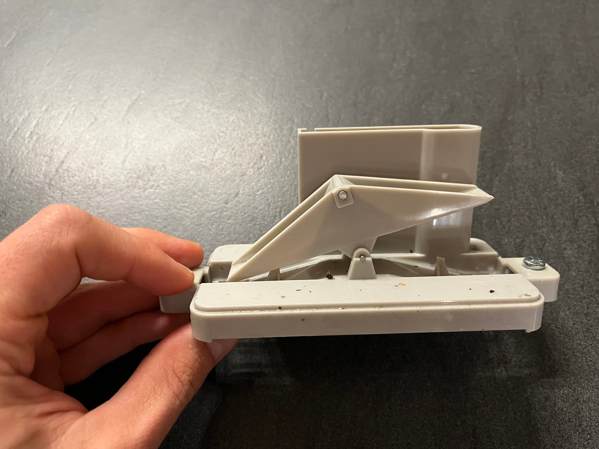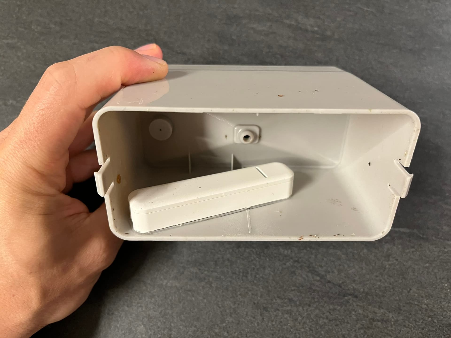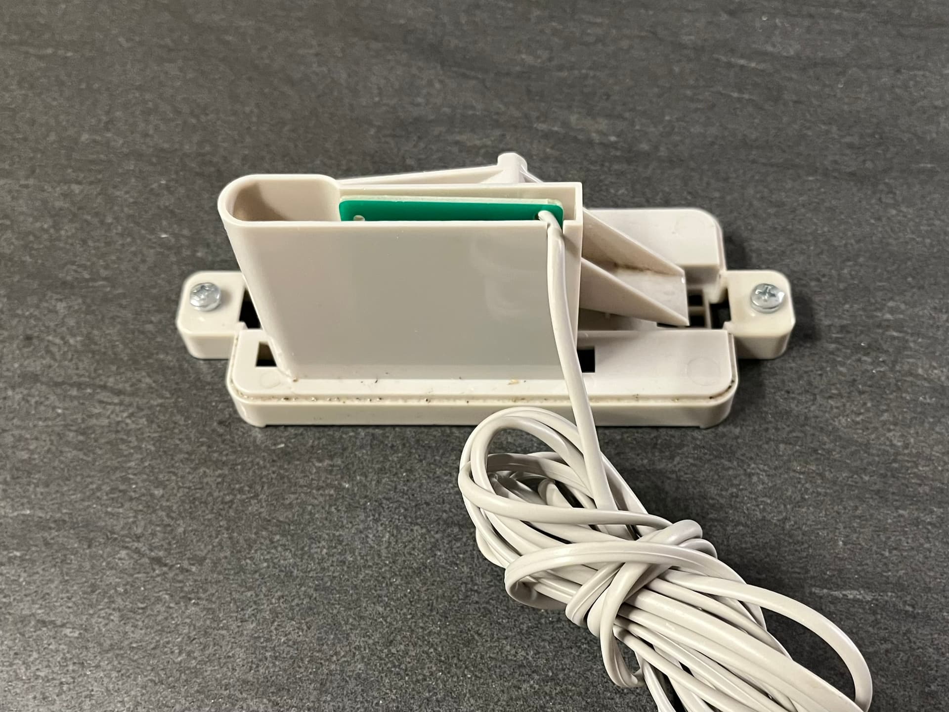 This part is tricky. The magnet in the WH-SP-RG is not super strong, and the “detection range” of the parasoll is not super large. Plus the magnet only travels ~ 1 cm with each “seesaw flip”, so the parasoll’s hall sensor has to be placed “close enough” to the magnet to the magnet’s magnetic field, but “far enough” to be able to distinguish a change between the seesaw’s position. After some trial and error the following position detects each seesaw flip reliably. The sticky tape that comes with the parasoll is also fairly strong, so it sticks firmly.