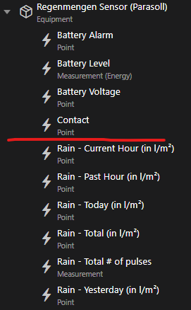 After pairing the parasoll, I use the first three default channels of the parasoll (see picture below) for battery management (channel 1 - 3) and the fourth channel for the actual calculation (channel “Contact”):