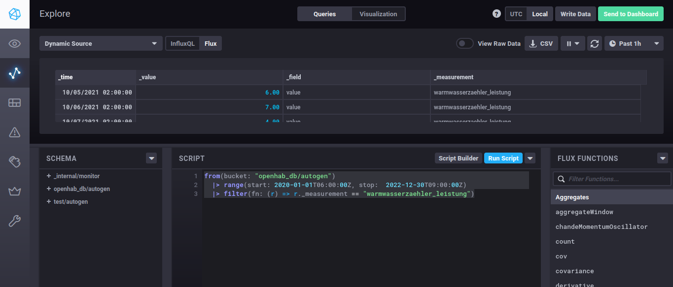 Trying to run the following Flux-code in Chronograf (which should theoretically do what I wanted to do)…