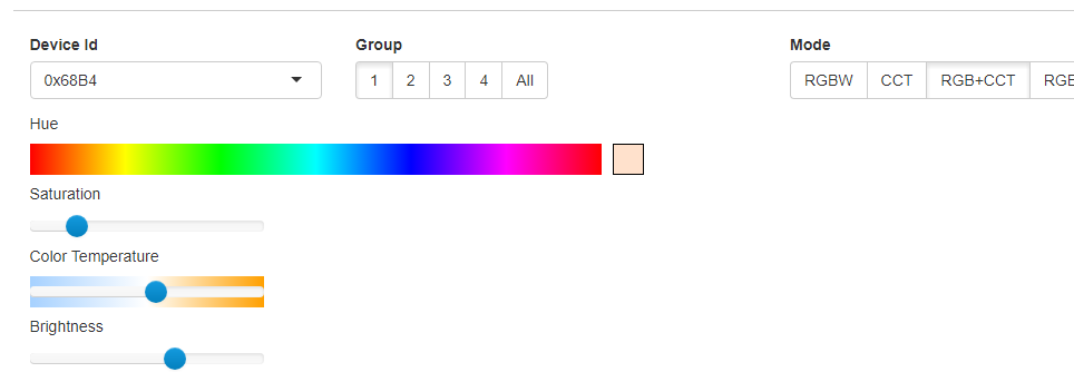 Note: The above is for one of the RGB+WW+CW also called rgb+cct globes which is setup/paired to a remotes device ID of 1 and a group of 1. Each milight remote has a hard coded device ID and for each of these you can have four groups. Bulbs do not have an ID and you pair/sync them to a device ID for a remote. You can have multiple remotes paired to a single globe at the same time. For example I have 1 remote that is paired to every globe in the house for testing, plus I have openhab paired and controlling every globe individually.