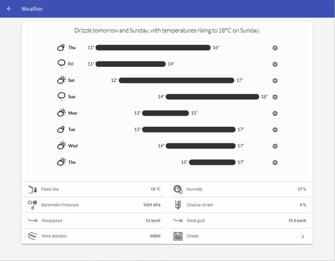 As luck would have it, there are a number of providers out there who have some nice looking widgets available and they are easily able to be implemented into a webview item via an html file.