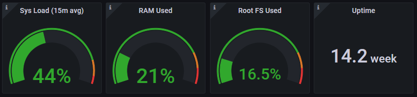 There is no configuration specific to openhab for Node exporter and prometheus. So you should be able to install and configure these components using internet sources. When successfull, these indicators from my dashboard are ready to put in your dashboard: