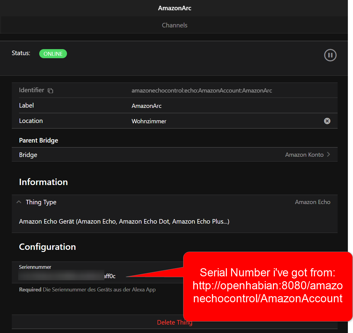 Let me explain the configuration of the Sonos Arc as Echo Device: I Installed the Amazon Echo Control Binding.