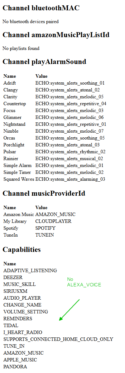 What does not work is use Sonos devices that do not support Alexa because of the lack of microphone, such as the Amp or One SL. For those there is no “THIRD_PARTY_AVS_SONOS_BOOTLEG” device with the ALEXA_VOICE capability that seems to be needed for the speak channel to work.