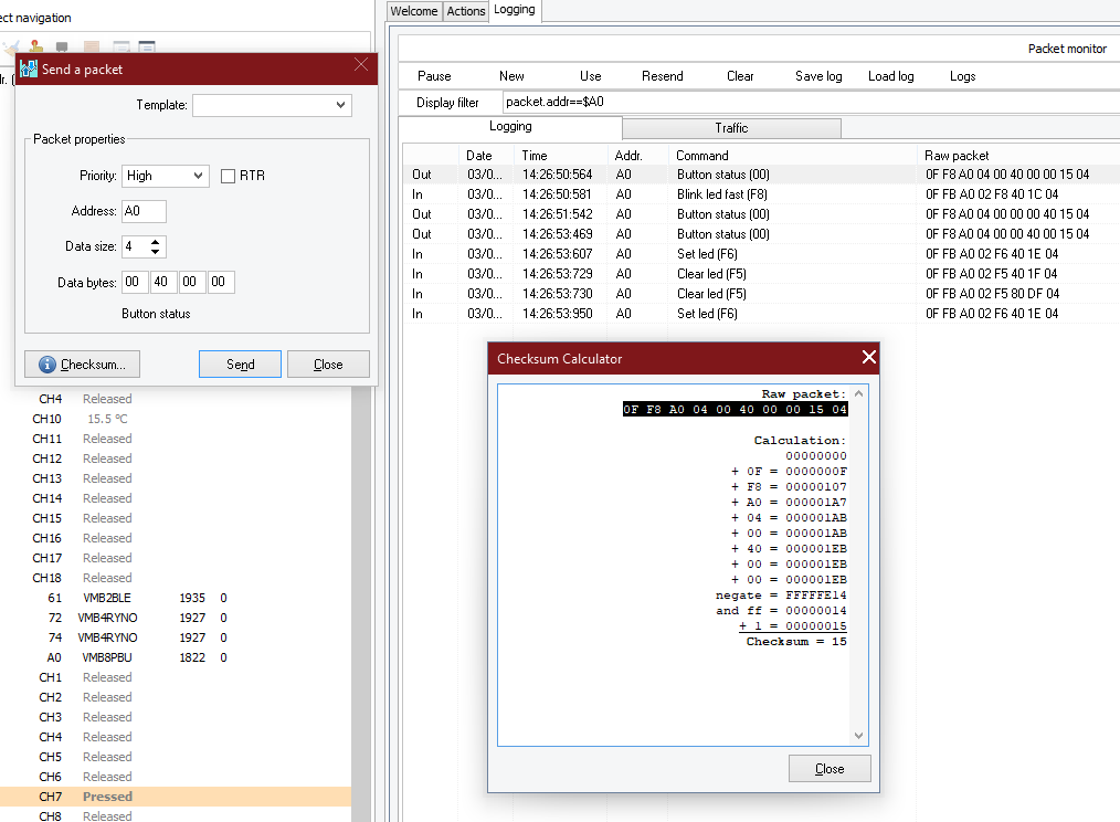 Or you may need to send a “Button Pressed” packet, followed by “Button Long Pressed” packet, later followed with a “Button Released” packet, depending on how you have setup your scenes in VelbusLink.,